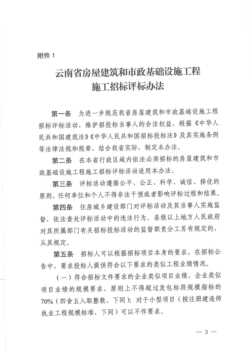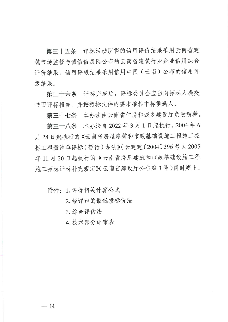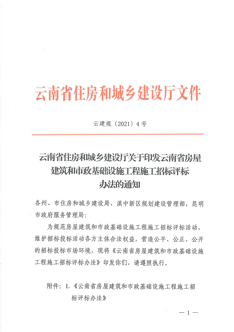 云南省住房和城鄉(xiāng)建設(shè)廳關(guān)于印發(fā)云南省房屋建筑和市政基礎(chǔ)設(shè)施工程施工招標評標辦法的通知(云建規(guī)【2021】4號)