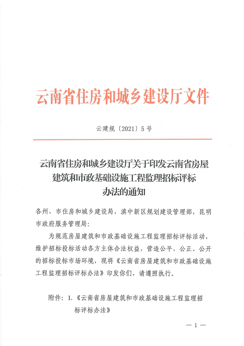 云南省住房和城鄉(xiāng)建設(shè)廳關(guān)于印發(fā)云南省房屋建筑和市政基礎(chǔ)設(shè)施工程施工招標(biāo)評標(biāo)辦法的通知(云建規(guī)【2021】4號)