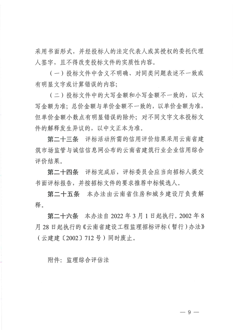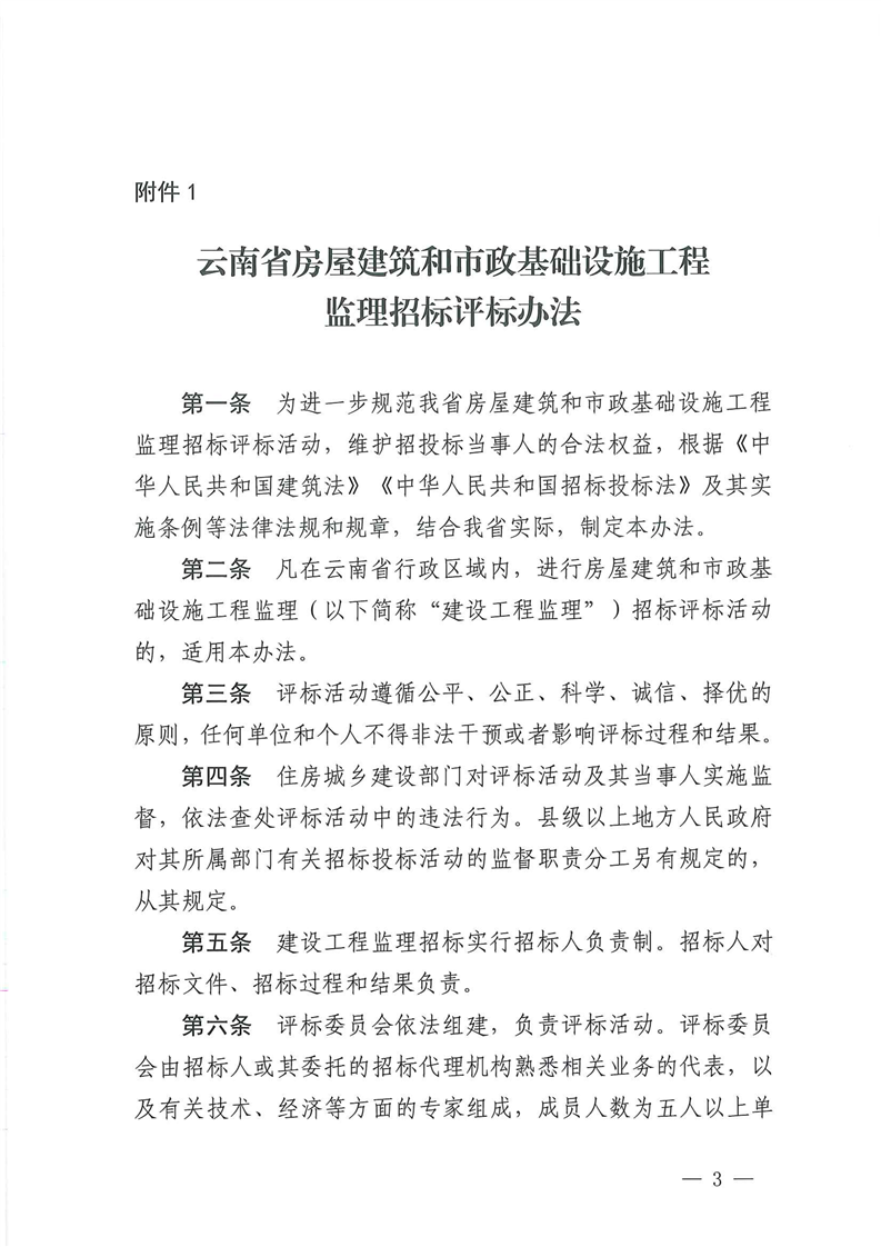云南省住房和城鄉(xiāng)建設(shè)廳關(guān)于印發(fā)云南省房屋建筑和市政基礎(chǔ)設(shè)施工程監(jiān)理招標(biāo)評標(biāo)辦法的通知