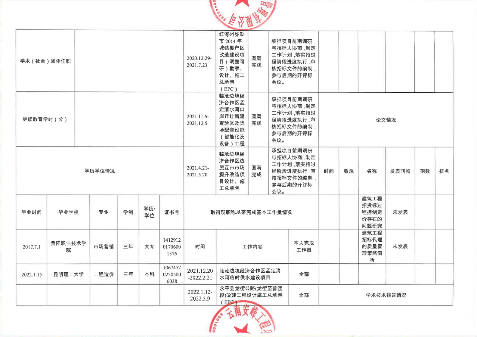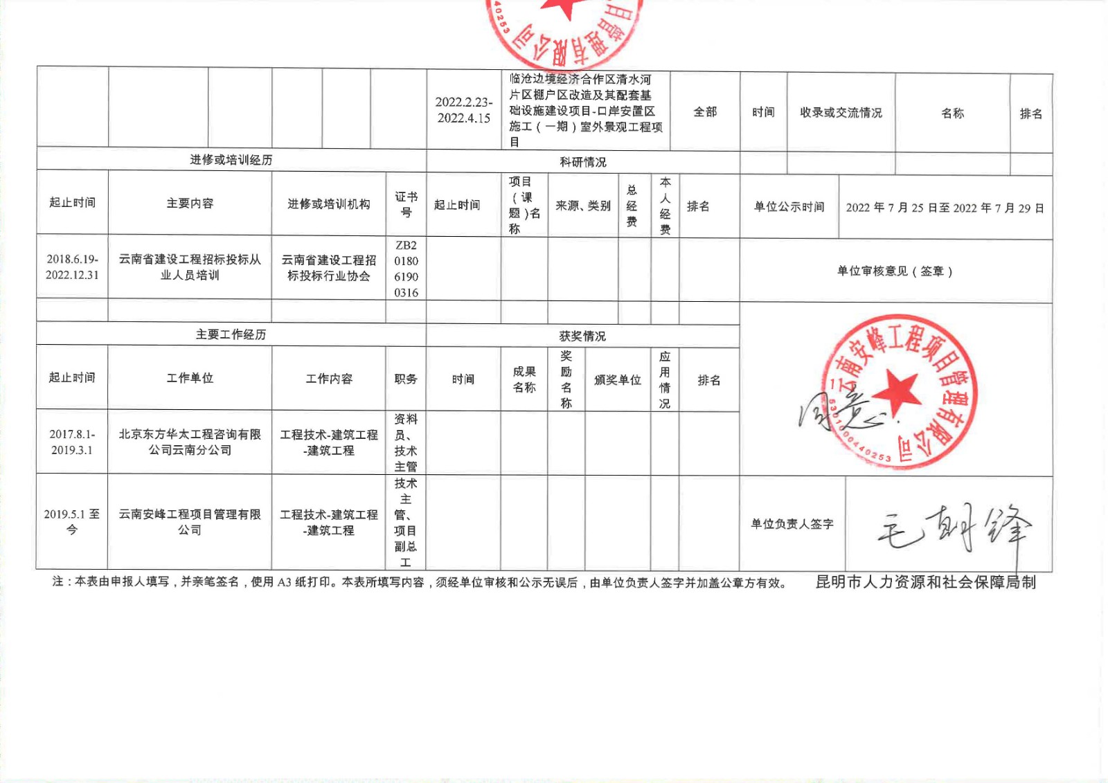 關(guān)于云南安峰工程項(xiàng)目管理有限公司員工李慶雷申報(bào)建筑工程系列(專業(yè))中級職稱情況公示