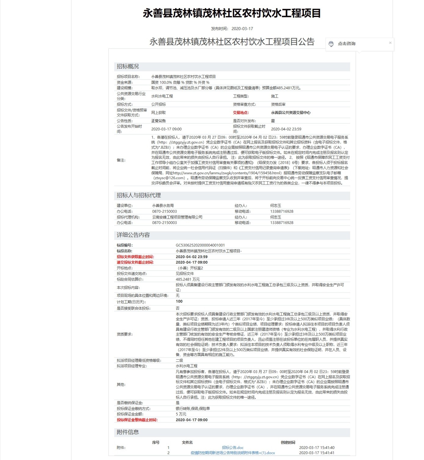 永善縣茂林鎮(zhèn)茂林社區(qū)農(nóng)村飲水工程項目 招標(biāo)公告