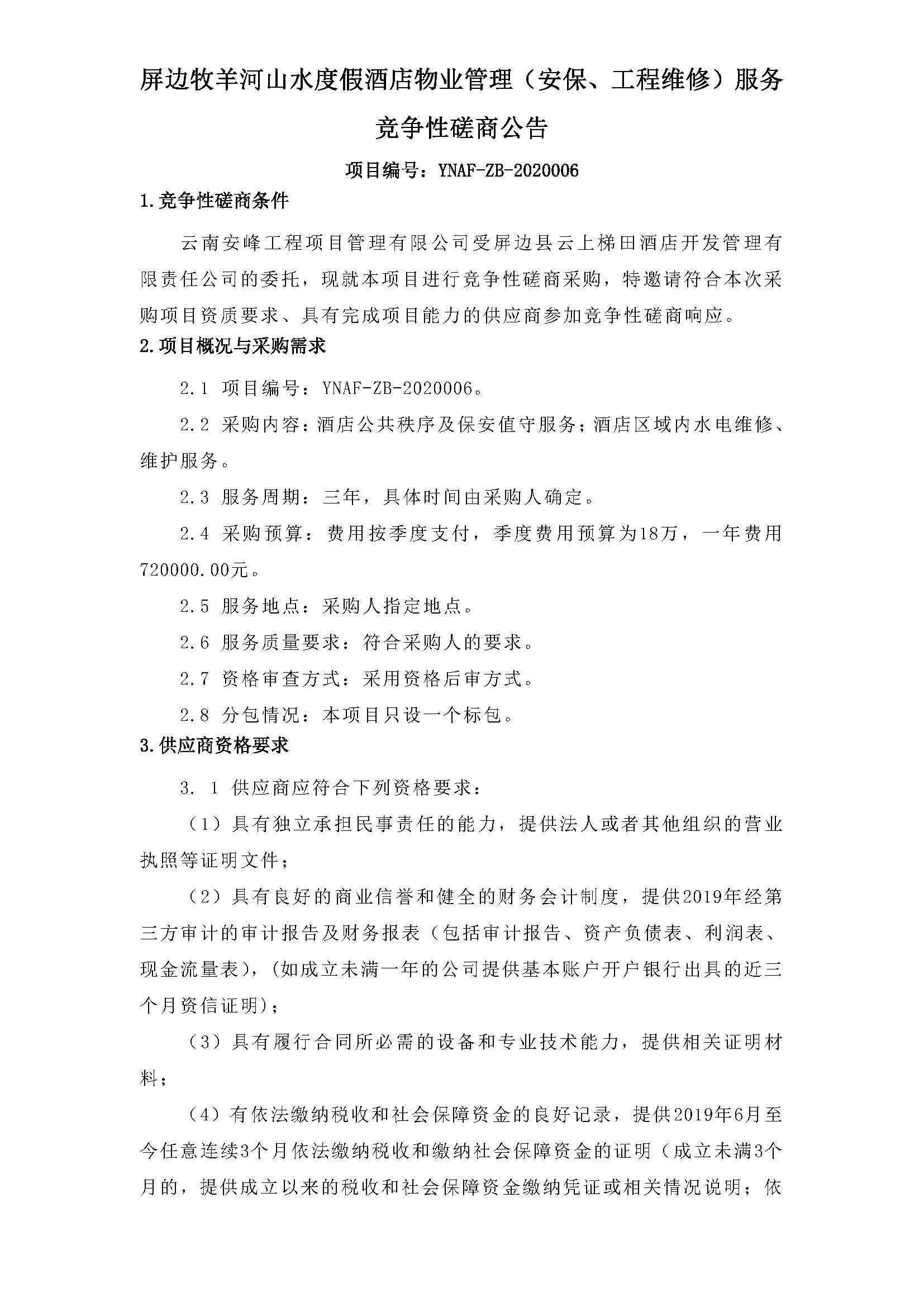 屏邊牧羊河山水度假酒店物業(yè)管理(安保、工程維修)服務