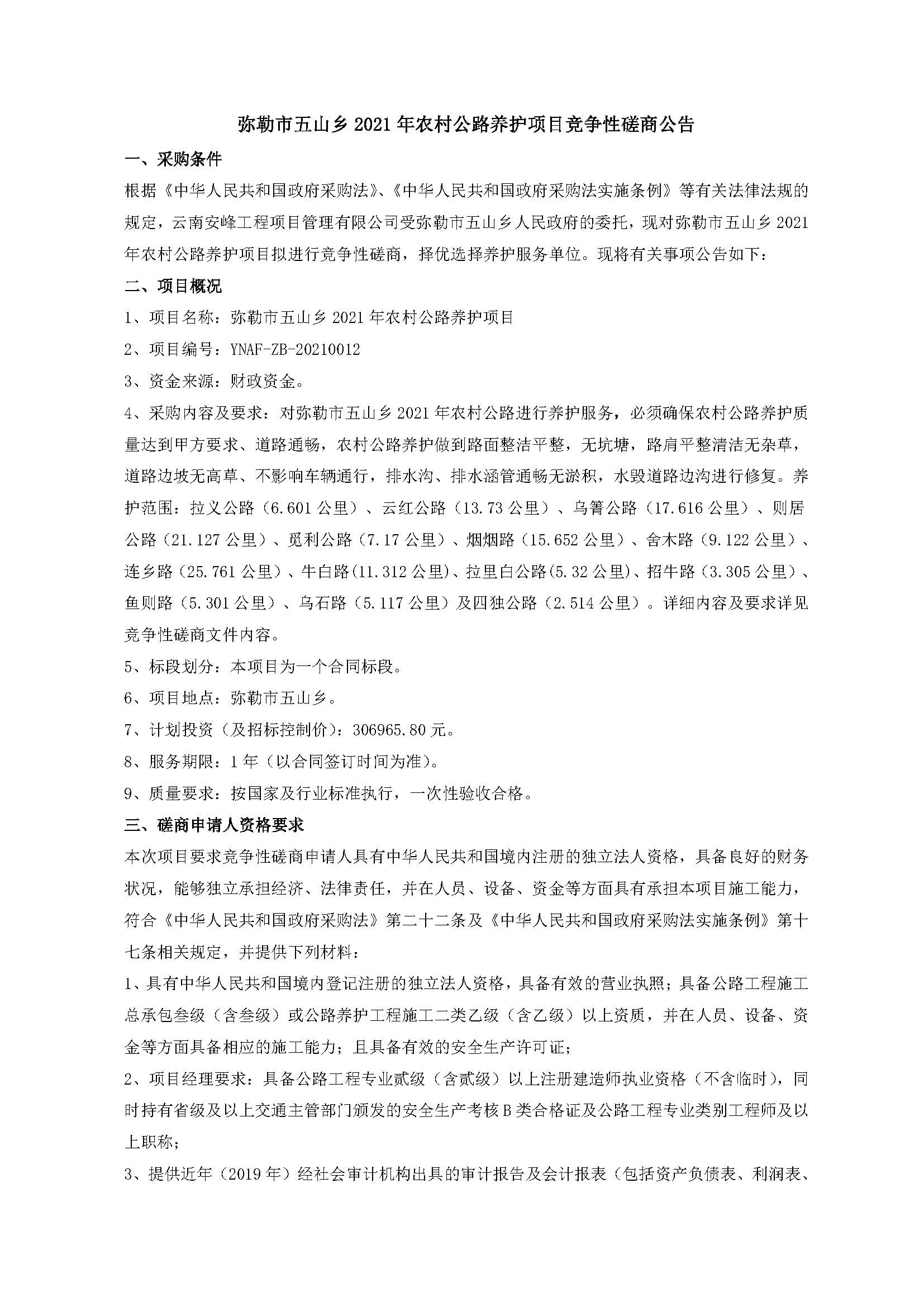 彌勒市五山鄉(xiāng)2021年農(nóng)村公路養(yǎng)護(hù)項(xiàng)目競爭性磋商公告