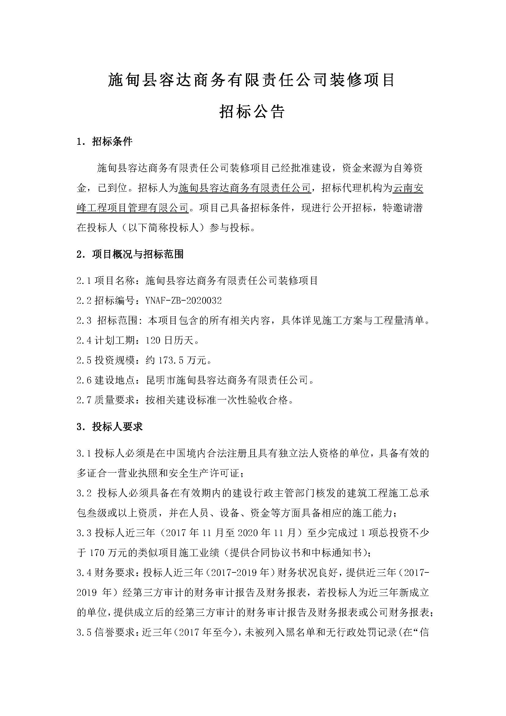 施甸縣容達(dá)商務(wù)有限責(zé)任公司裝修項(xiàng)目