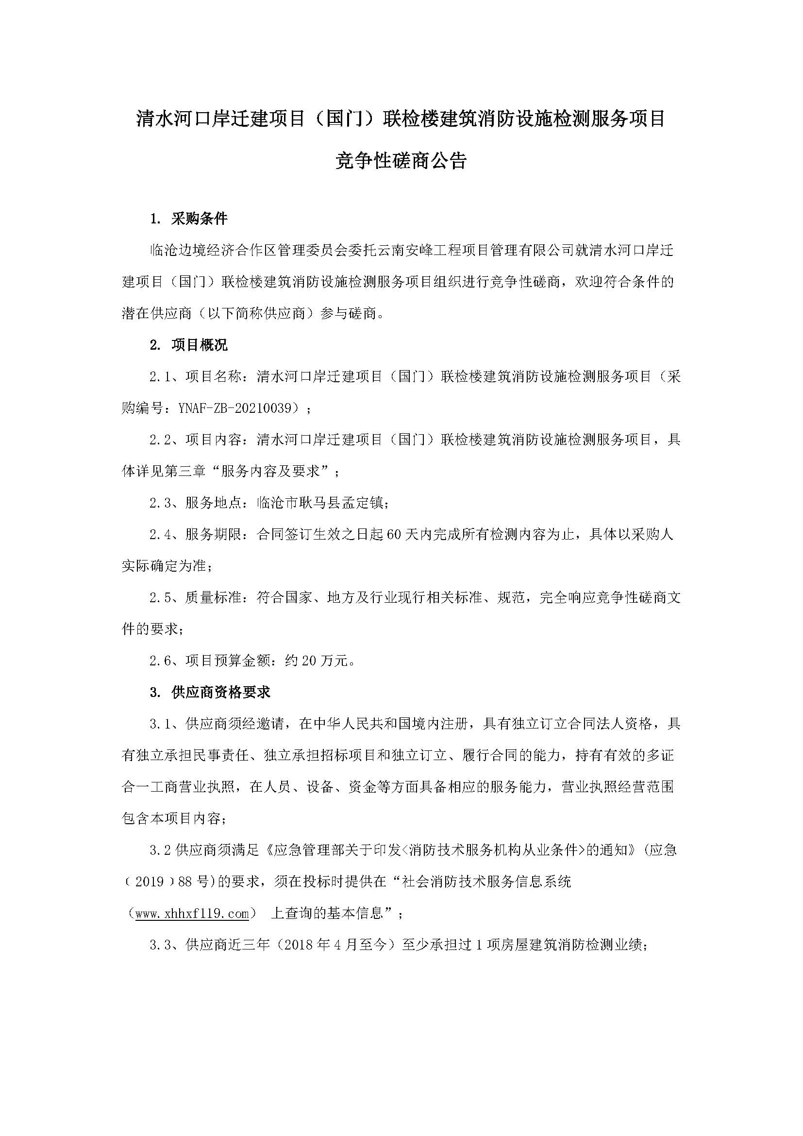 清水河口岸遷建項(xiàng)目(國門)聯(lián)檢樓建筑消防設(shè)施檢測服務(wù)項(xiàng)目 競爭性磋商公告