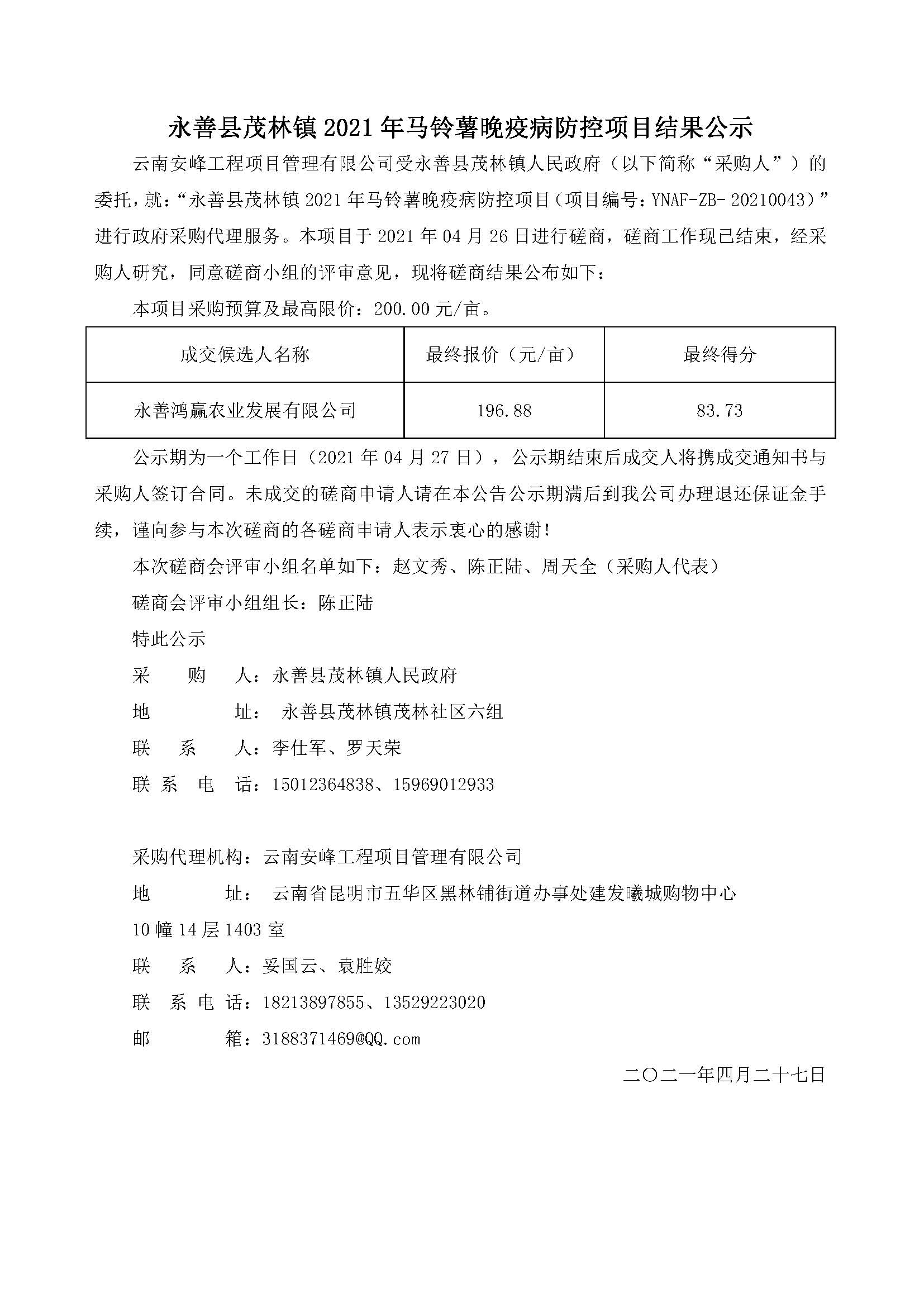 永善縣茂林鎮(zhèn)2021年馬鈴薯晚疫病防控項(xiàng)目結(jié)果公示