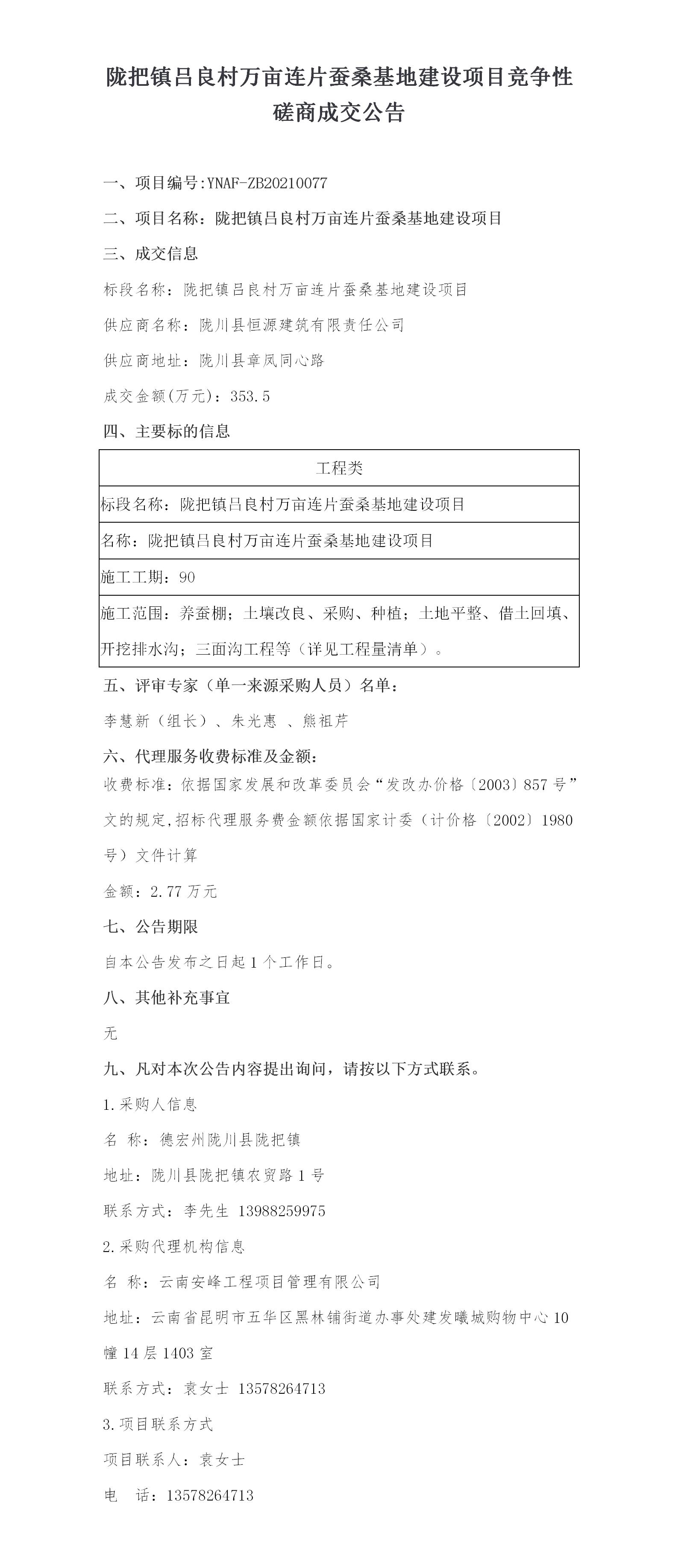 隴把鎮(zhèn)呂良村萬畝連片蠶桑基地建設項目競爭性磋商成交公告
