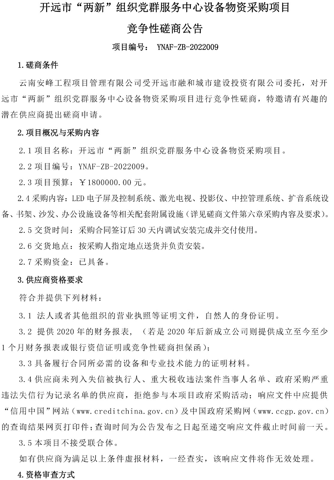 開遠(yuǎn)市“兩新”組織黨群服務(wù)中心設(shè)備物資采購項(xiàng)目競爭性磋商公告