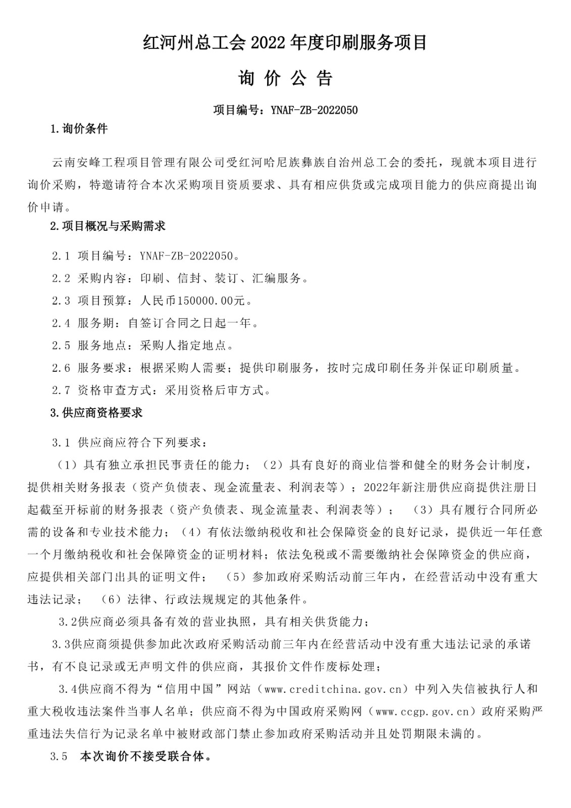 紅河州總工會(huì)2022年度印刷服務(wù)項(xiàng)目