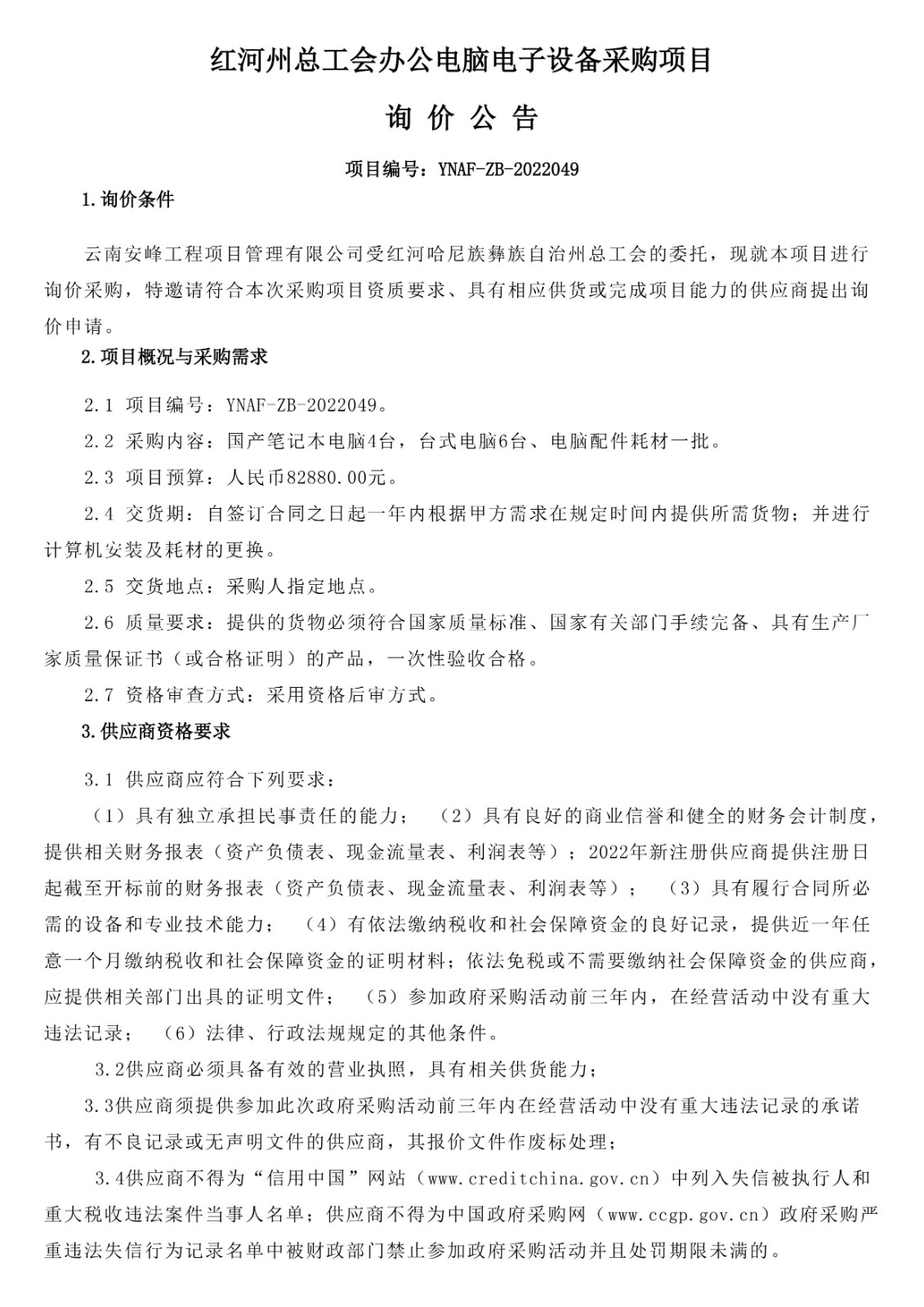 紅河州總工會辦公電腦電子設(shè)備采購項目
