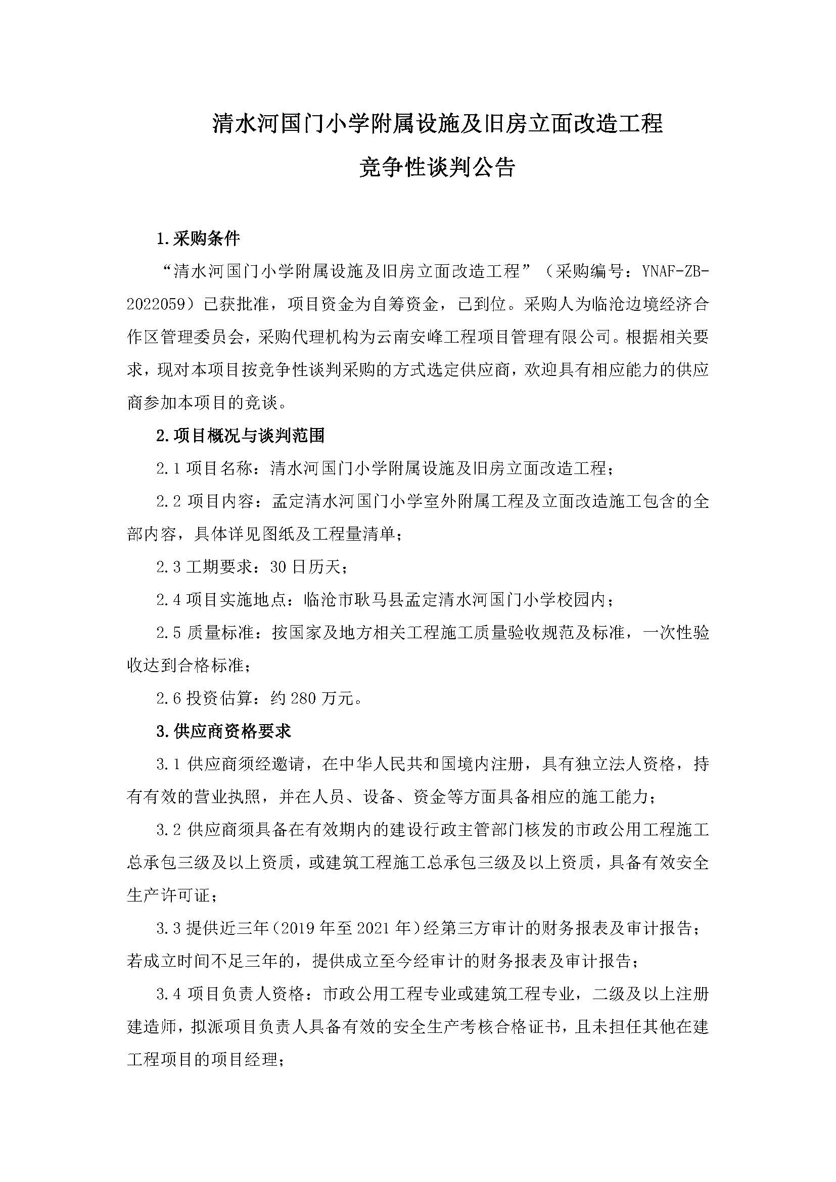 清水河國(guó)門(mén)小學(xué)附屬設(shè)施及舊房立面改造工程競(jìng)爭(zhēng)性談判公告