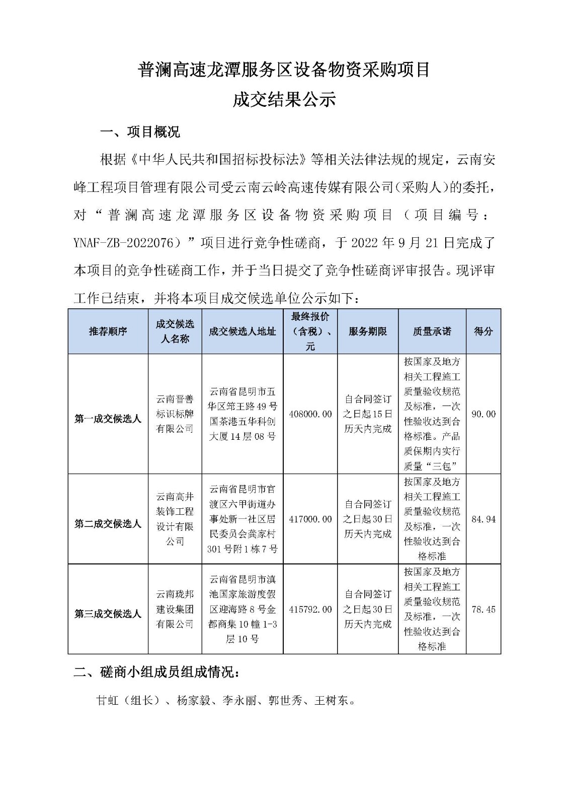 普瀾高速龍?zhí)斗?wù)區(qū)設(shè)備物資采購項目