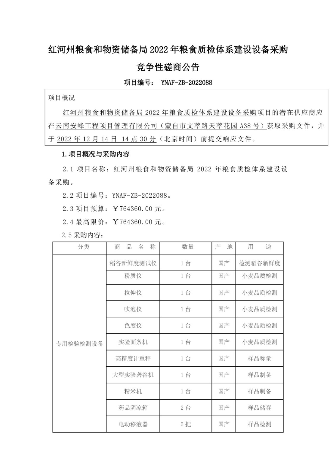 紅河州糧食和物資儲(chǔ)備局2022年糧食質(zhì)檢體系建設(shè)設(shè)備采購(gòu)競(jìng)爭(zhēng)性磋商公告