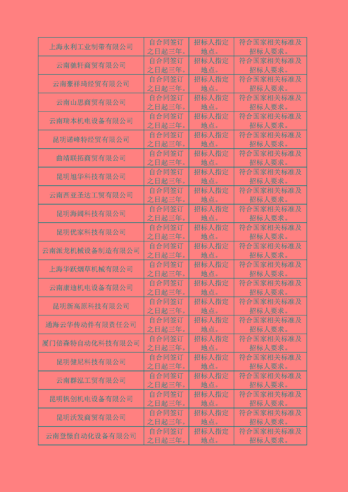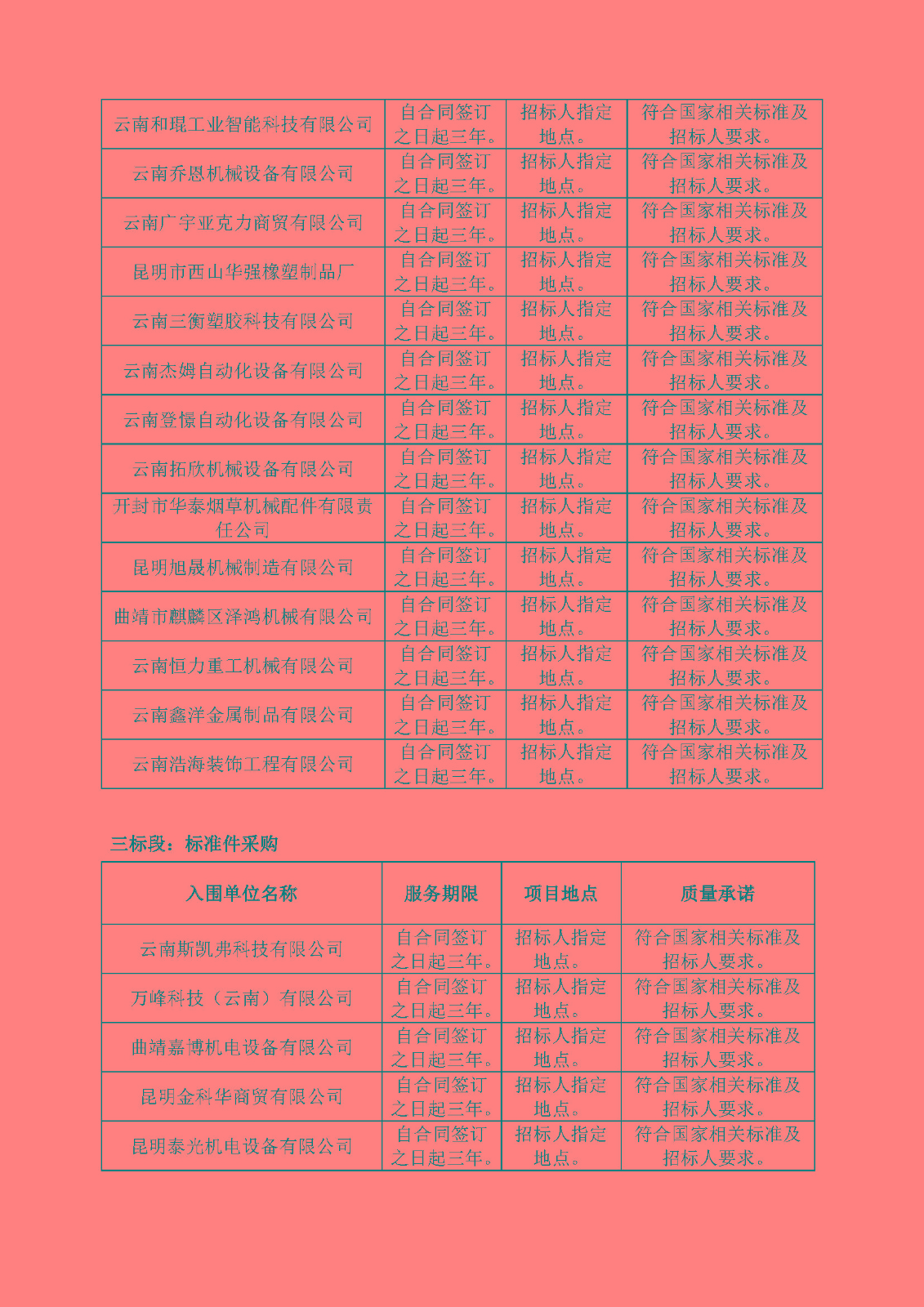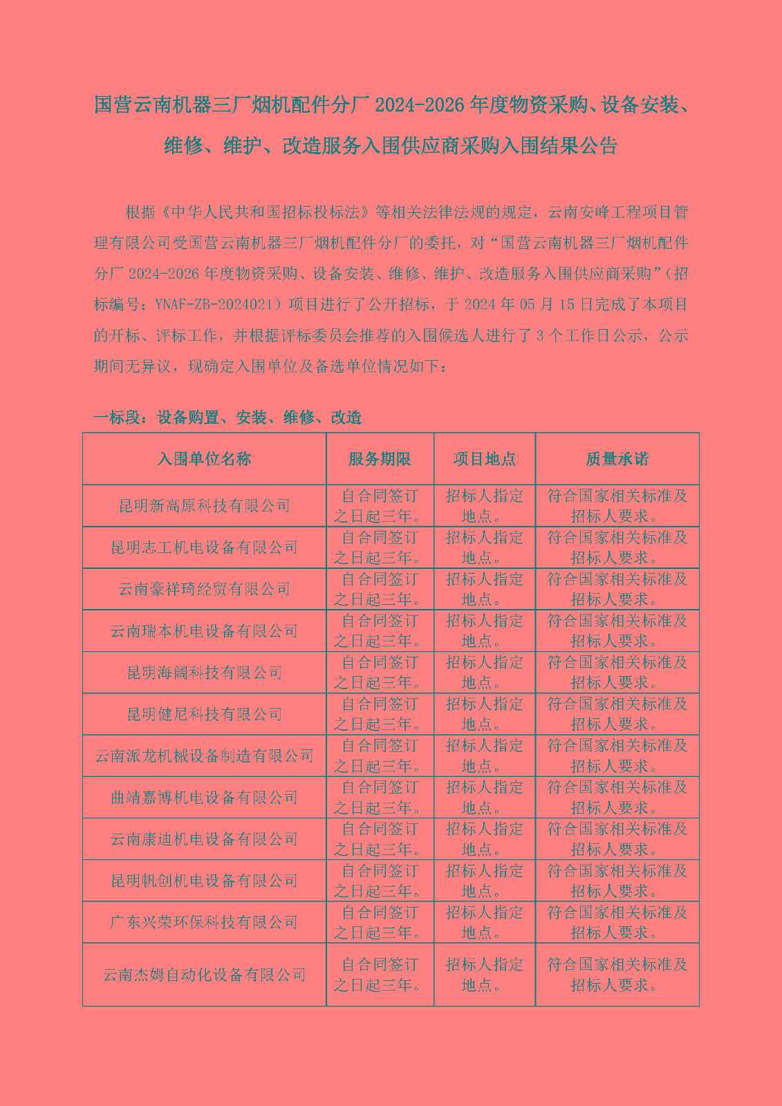 國營云南機器三廠煙機配件分廠2024-2026年度物資采購、設備安裝、維修、維護、改造服務入圍供應商采購入圍結果公告