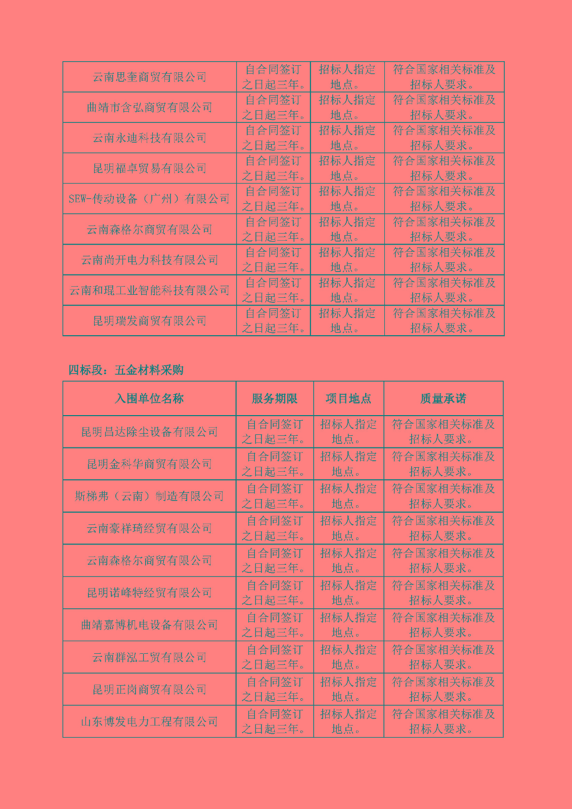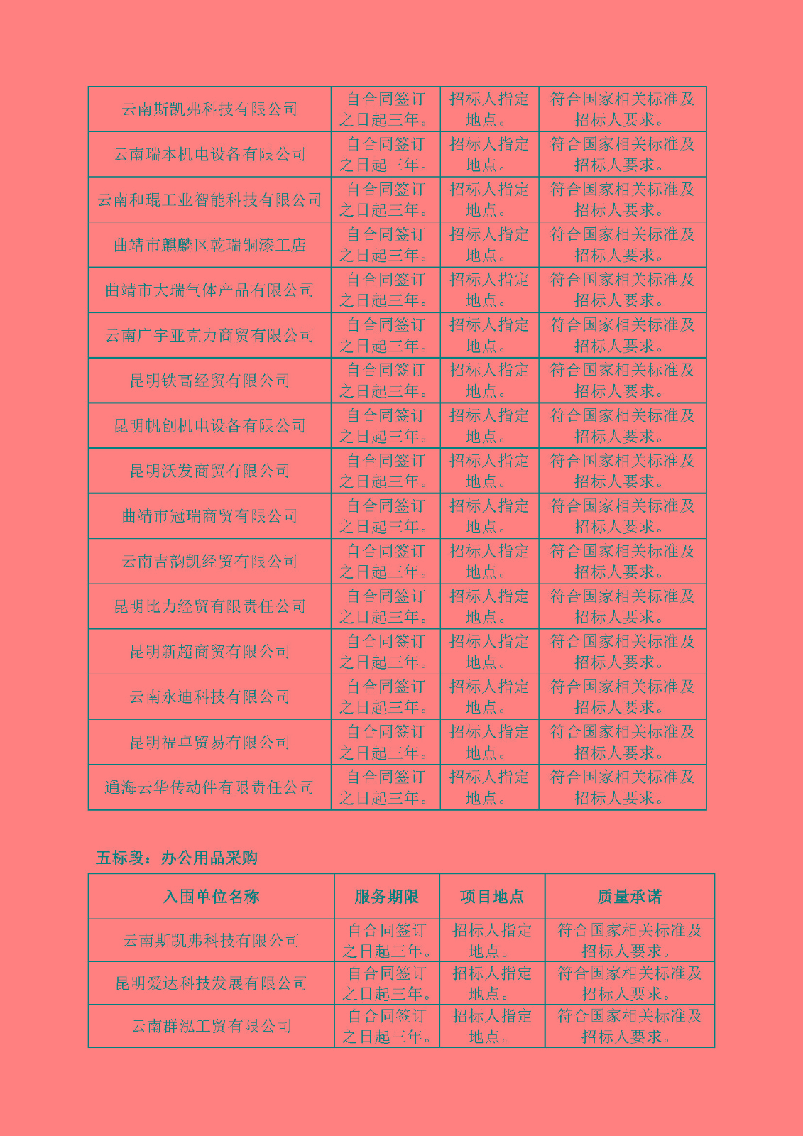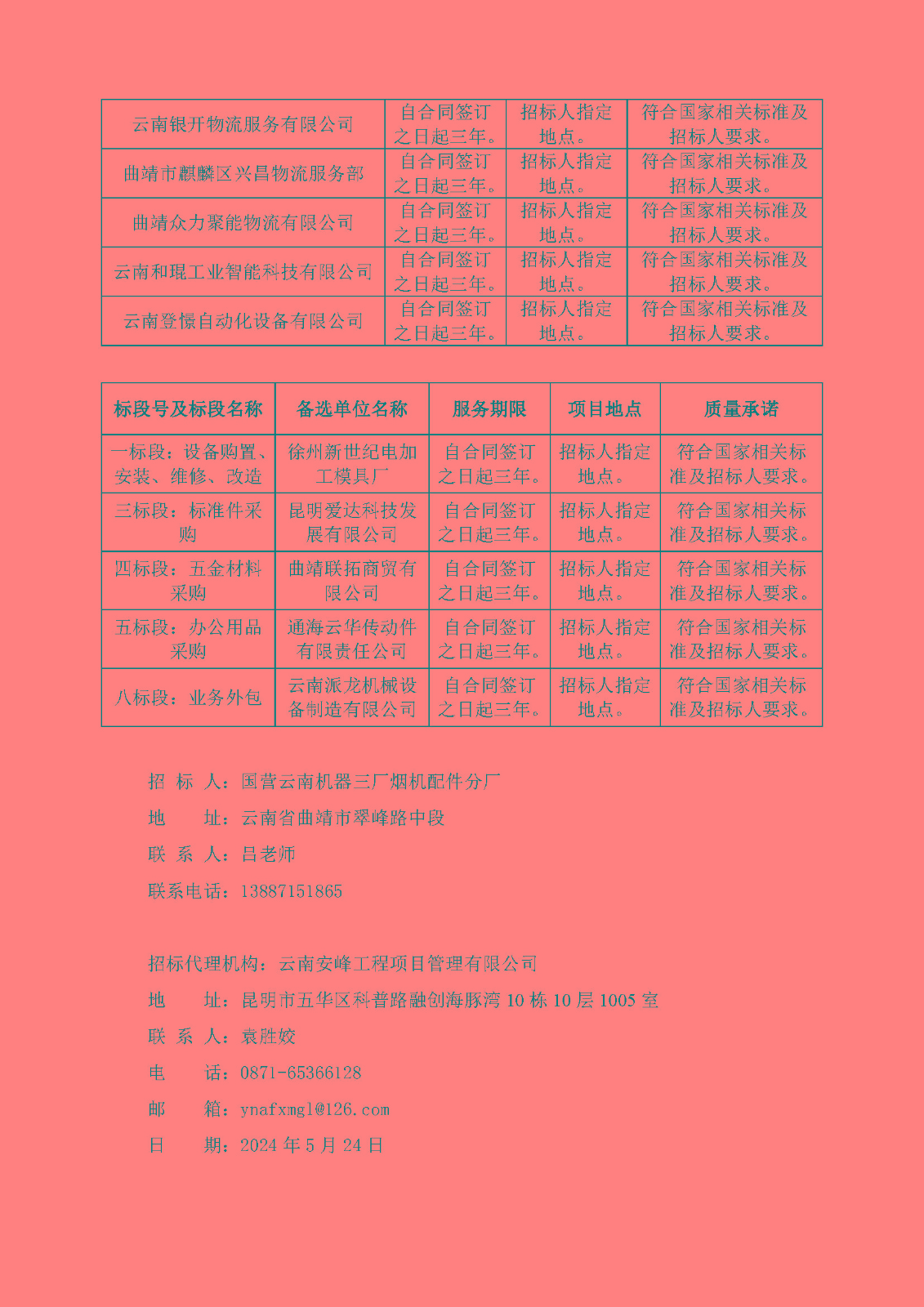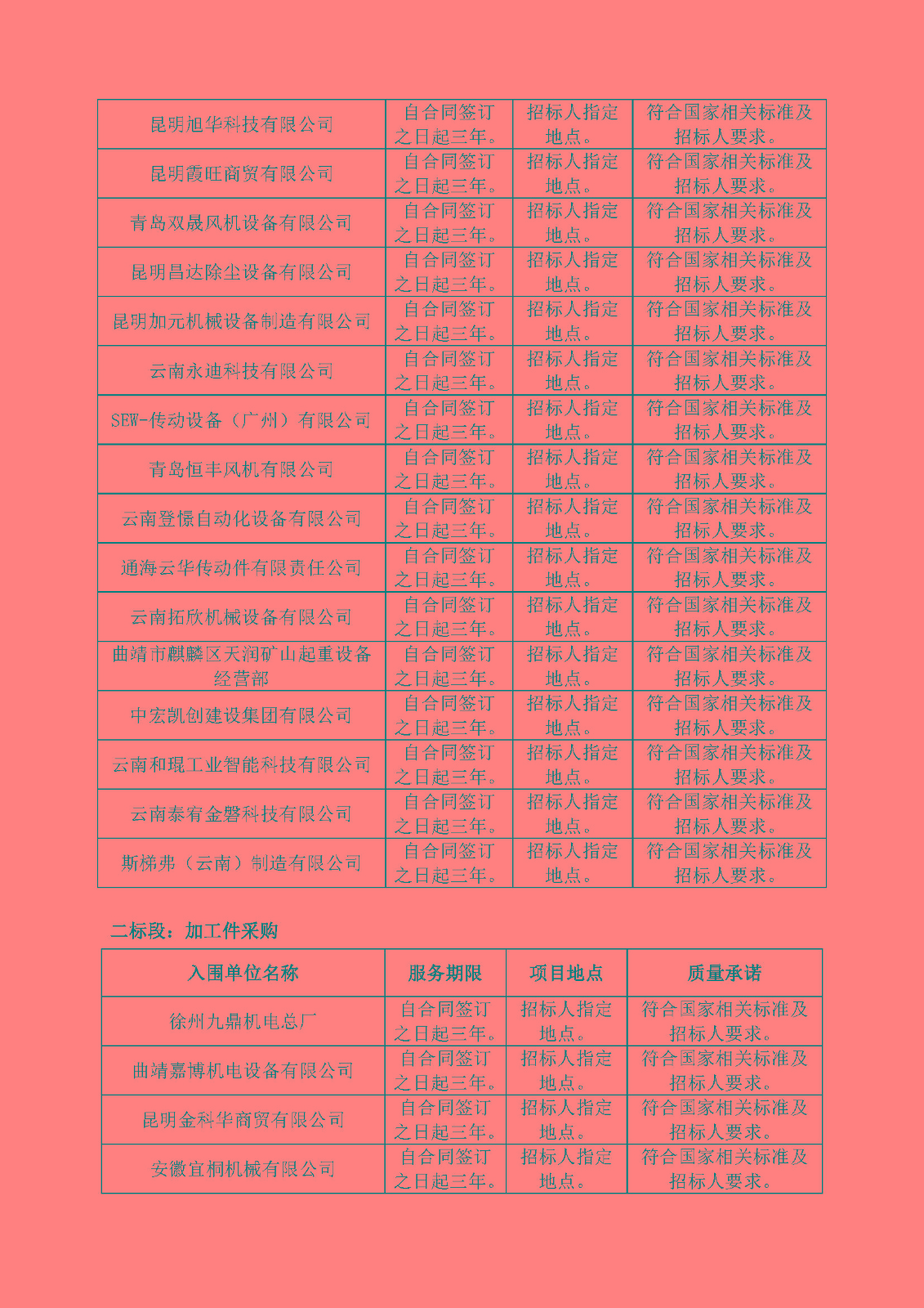 國營云南機器三廠煙機配件分廠2024-2026年度物資采購、設備安裝、維修、維護、改造服務入圍供應商采購入圍結果公告