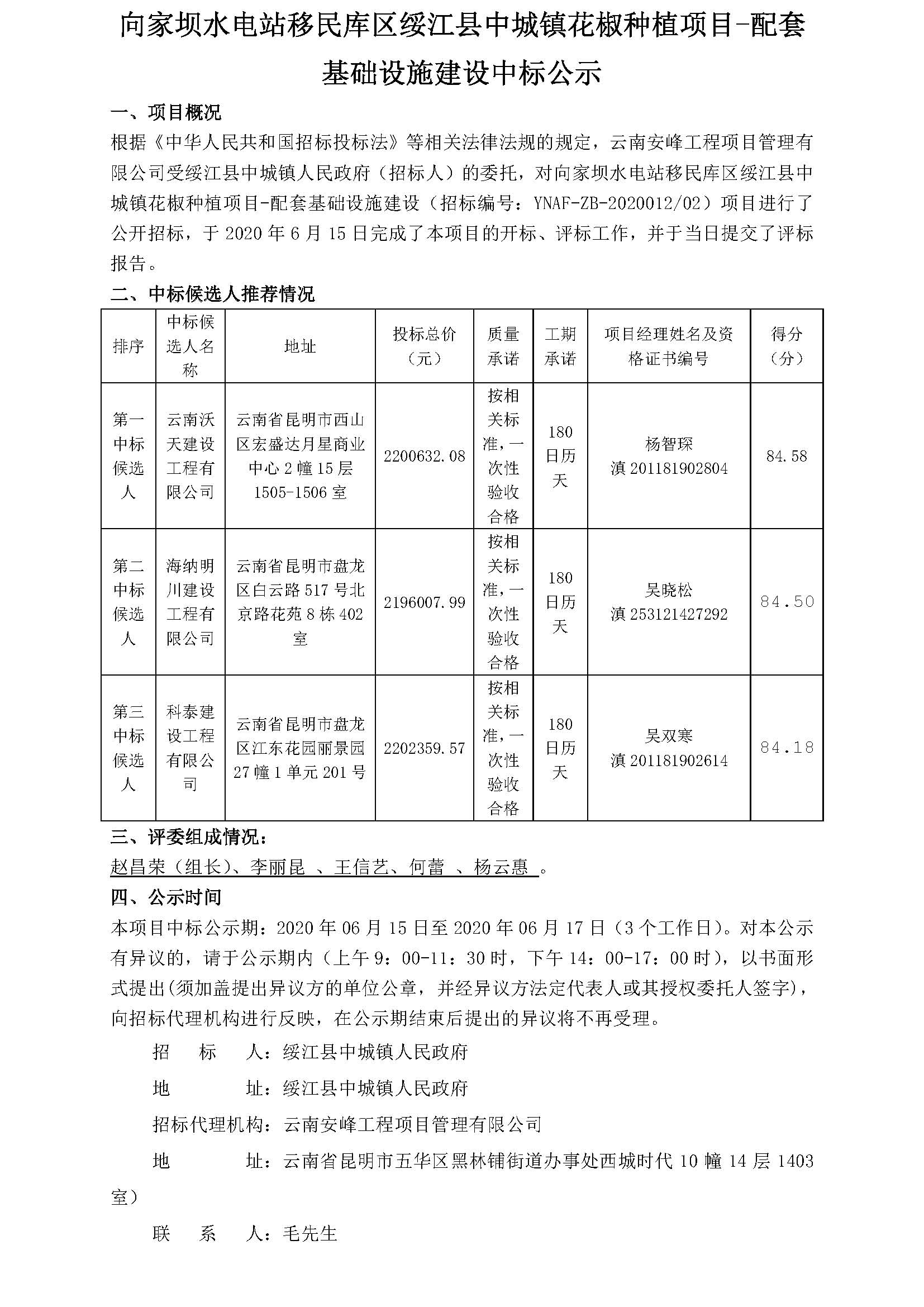 向家壩水電站移民庫區(qū)綏江縣中城鎮(zhèn)花椒種植項目-配套基礎(chǔ)設(shè)施建設(shè)中標(biāo)公示