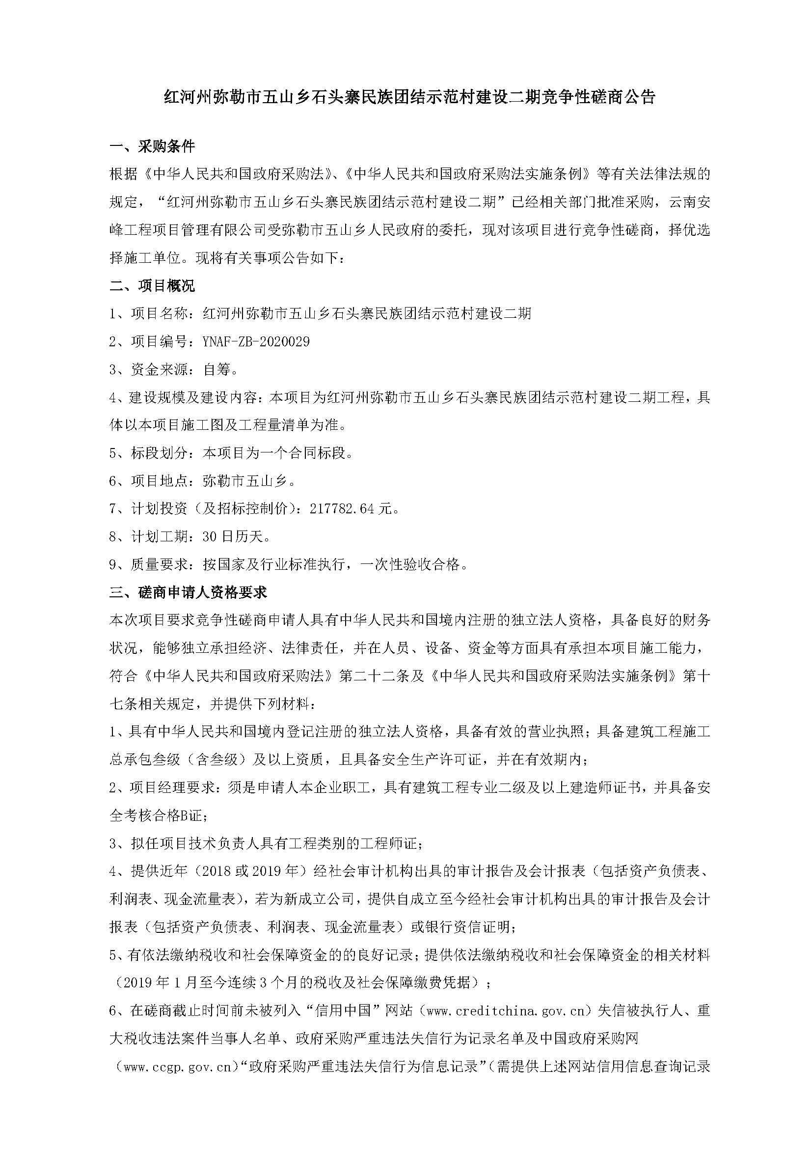 紅河州彌勒市五山鄉(xiāng)石頭寨民族團(tuán)結(jié)示范村建設(shè)二期競爭性磋商公告