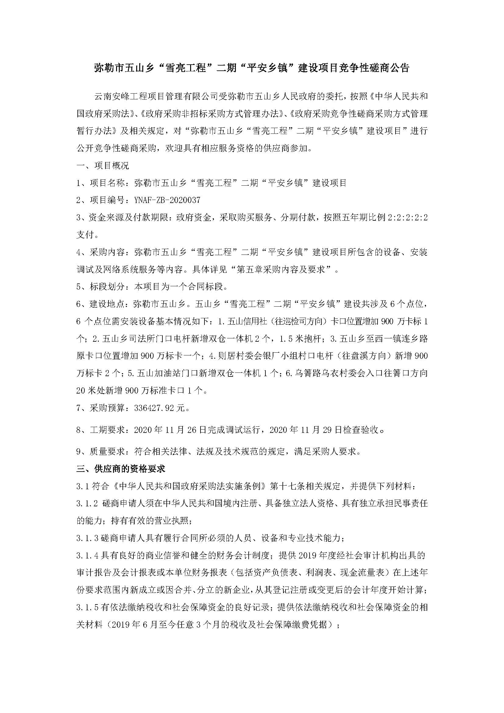 彌勒市五山鄉(xiāng)“雪亮工程”二期“平安鄉(xiāng)鎮(zhèn)”建設(shè)項(xiàng)目競(jìng)爭(zhēng)性磋商公告