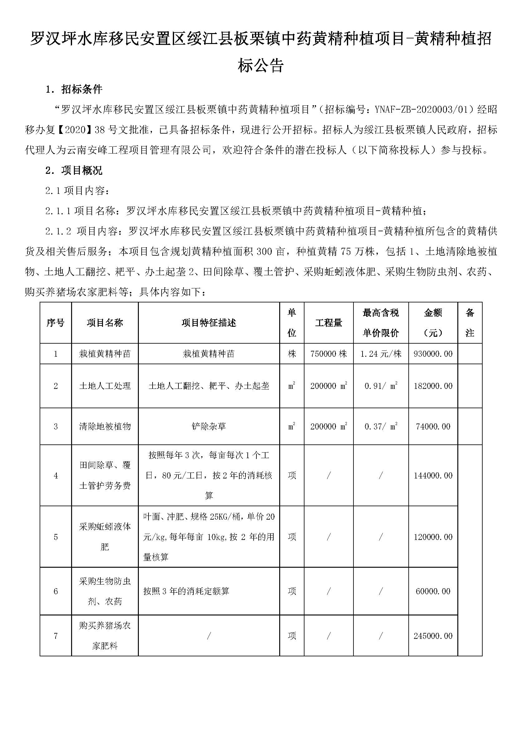 羅漢坪水庫(kù)移民安置區(qū)綏江縣板栗鎮(zhèn)中藥黃精種植項(xiàng)目-黃精種植招標(biāo)公告